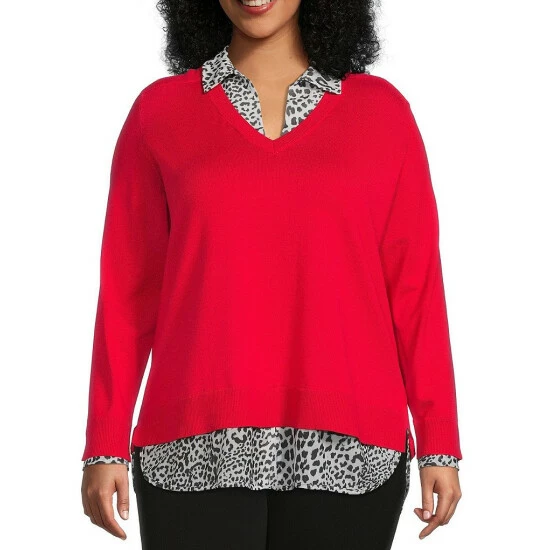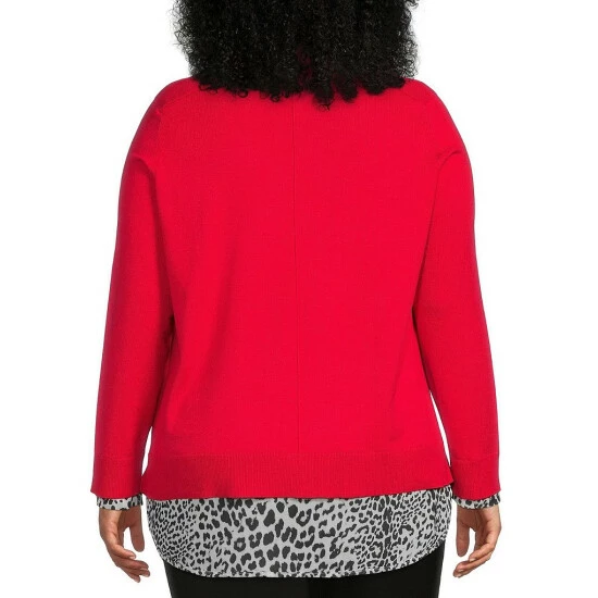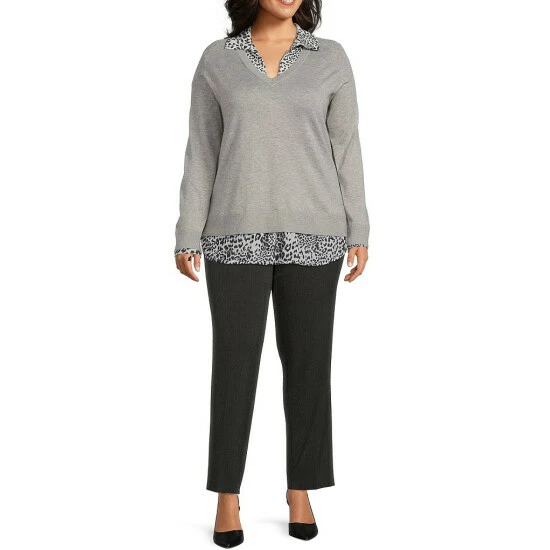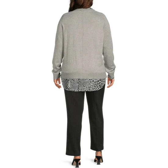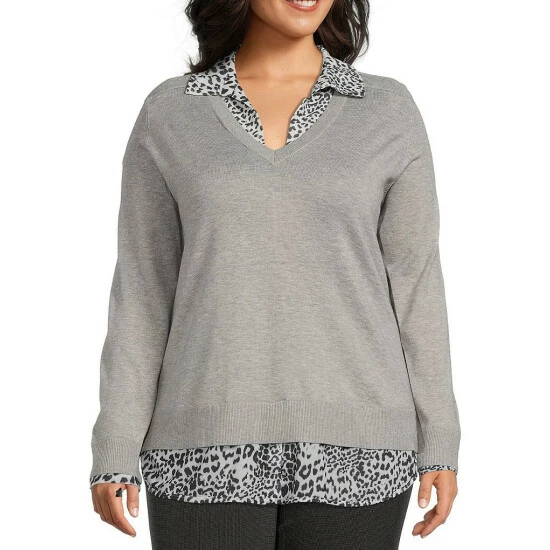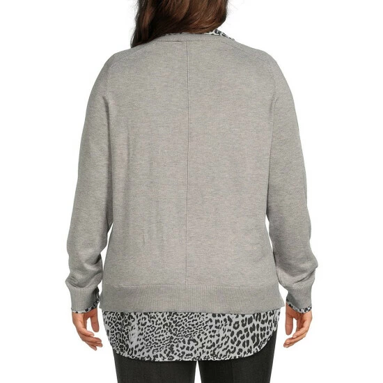 Brand new ๐Ÿ˜€ Investments Plus Size Animal Print Long Sleeve V-Neck Two-Fer Top Grey Heather ๐Ÿฅฐ