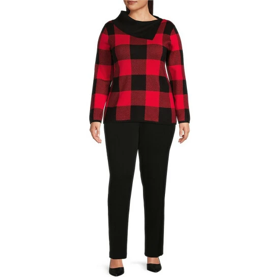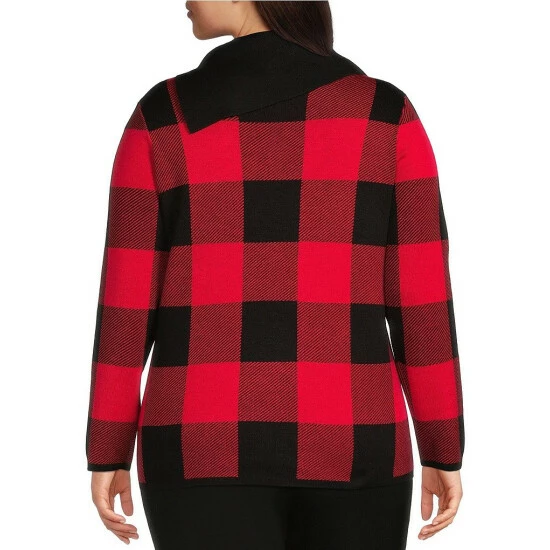 Promo 🌟 Investments Plus Size Black Toreador Check Print Long Sleeve Envelope Neck Sweater ✔️