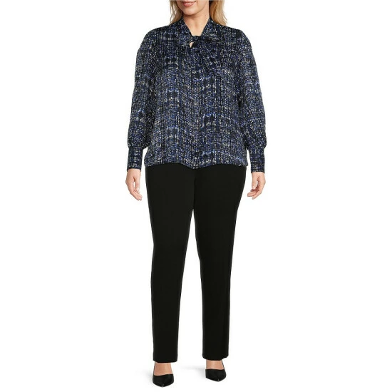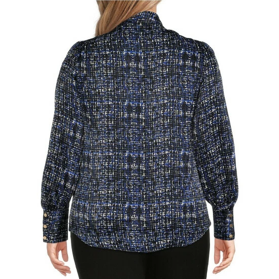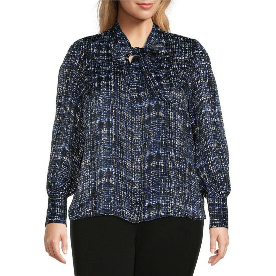 Deals πŸ‘ Investments Plus Size Plaid Texture Long Sleeve Tie Y-Neck Button Front Top πŸŽ‰