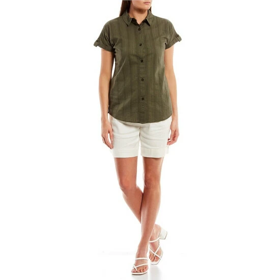 - Short sleeves with button tab detail