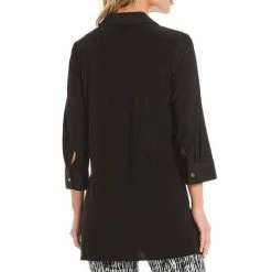 Top 10 😀 Slim Factor By Investments 3/4 Pleated Chiffon Sleeve Crew Neck Button Front Blouse Black ✨