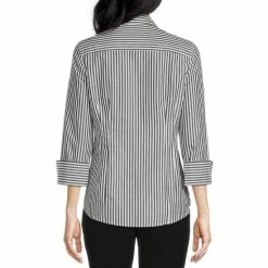 Discount 👍 Investments Petite Size Taylor Gold Label Non-Iron Point Collar 3/4 Sleeve Stripe Button Front 👕 Shirt Bold Stripe ❤️