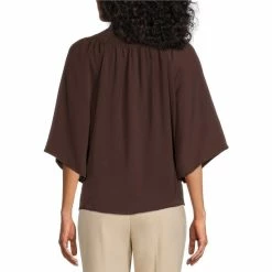 Hot Sale 😍 Investments 3/4 Sleeve Smocked Ruffle Crew Neck Partial Button Front Top Black 💯
