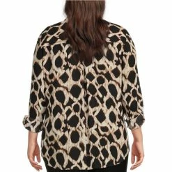 Wholesale 🔔 Investments Plus Size Olivia Diffused Mosaic Print Point Collar Long Roll-Tab Sleeve Button Front Utility Blouse 👏