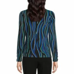Best Sale 🔔 Investments Plus Size Knit Electric Zebra Print Crew Neck Long Button Sleeve Top 👏