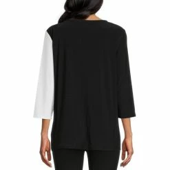 Hot Sale 😍 Investments Zebra Print Knit Pleated Tie Split V-Neck 3/4 Sleeve Top Neutral Zebra ⭐