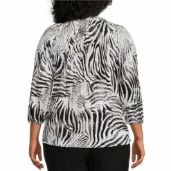 Deals ⭐ Investments Petite Size Zebra Knit Pleated Tie Split V-Neck 3/4 Sleeve Top Neutral Zebra ⌛