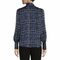 New 🤩 Investments Plaid Texture Long Sleeve Tie Y-Neck Button Front Top 💯