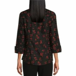 Outlet 🎁 Investments Petite Size Taylor Gold Label Non-Iron Point Collar 3/4 Sleeve Poppy Floral Print Button Front 👚 Shirt 🎉