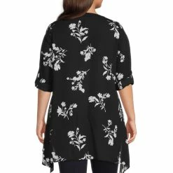 Best Sale ❤️ Slim Factor By Investments Plus Size Woven Floral Print V-Neck 3/4 Roll-Tab Sleeve Handkerchief Hem Tunic Scattered Floral 🛒
