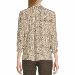 New 💯 Investments Caroline Signature V-Neck 3/4 Sleeve Serene Leopard Print Button Front Top ❤️