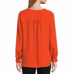 Cheapest 👍 Investments Petite Size Woven Long Sleeve Y-Neck Button Front Top Surf The Web 🔥