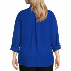 Cheap 🌟 Investments Olivia Point Collar Long Roll-Tab Sleeve Button Front Utility Blouse Black 🔥