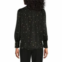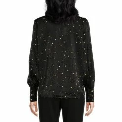 Hot Sale 🧨 Investments Petite Size Twilight Night Long Sleeve Tie Y-Neck Button Front Top 🛒