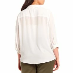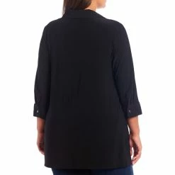 Cheap 🌟 Investments Olivia Point Collar Long Roll-Tab Sleeve Button Front Utility Blouse Black 🔥