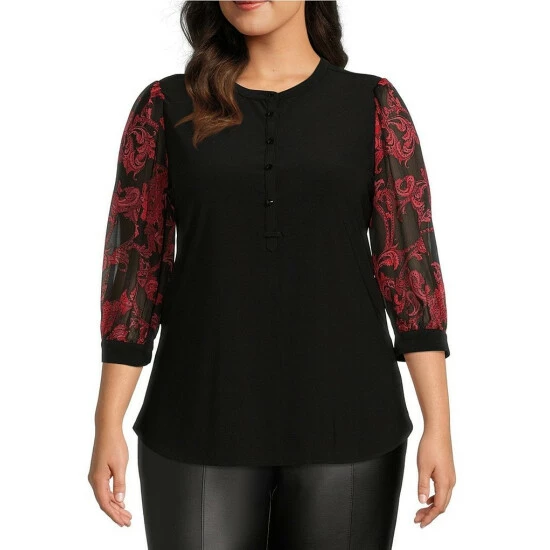 - Solid black with paisley printed sleevesย