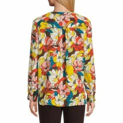 Wholesale 🎉 Investments Petite Size Stripe Print Long Sleeve Y-Neck Woven Top Tonal Blocked Stripe 👍