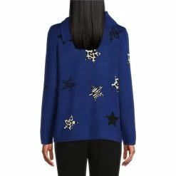 Flash Sale ⌛ Investments Petite Size Star Print Envelope Neck Long Sleeve Sweater Neutral Stars 👏