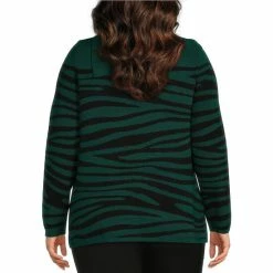 Hot Sale 🤩 Investments Plus Size Zebra Print Envelope Neck Long Sleeve Sweater Botanical Zebra 😍