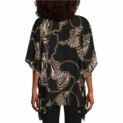 Buy 😍 Slim Factor By Investments Ikat Print Cowl Neck 3/4 Sleeve Layered Poncho Ikat Scarf Print 🤩