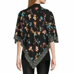 Deals 💯 Slim Factor By Investments Floral Print 3/4 Sleeve V-Neck Tie Layered Poncho Flower Scarf ✨