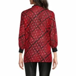 Cheap 🥰 Slim Factor By Investments Red Plaid Print 3/4 Sleeve Tie Neck Blouse Red Black Plaid 👍