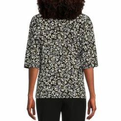 Cheapest 💯 Investments Petite Size Knit Pop Ditsy Floral Print Keyhole Neck Elbow Sleeve Top 🎁