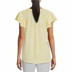 Cheapest ⭐ Investments Petite Size Breezy Petal Print Split V-Neck Short Flutter Sleeve Top ⭐