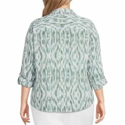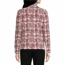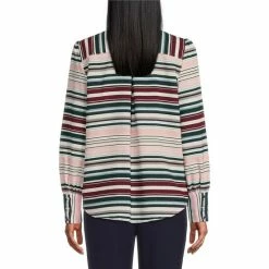Promo 👍 Investments Petite Size Woven Ribbon Striped Long Sleeve Button Front Notch Collar Top ❤️