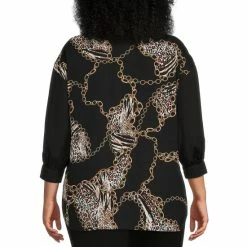 Promo 😀 Investments Woven Pleated Long Sleeve Jewel Neck Covered Half Button Placket Top Black 🎁