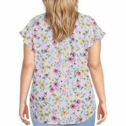 Promo 😉 Investments Plus Size Watercolor Floral Print Split V-Neck Short Flutter Sleeve Top ✨