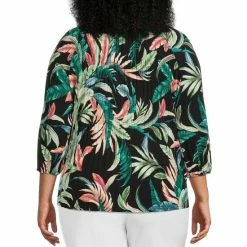 Buy 🔥 Investments Plus Size Watercolor Palm Knit Pleated Tie Split V-Neck 3/4 Sleeve Top 🌟