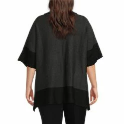 Buy 🤩 Investments Plus Size Zip Point Collar Elbow Sleeve Charcoal Black Border Sweater Poncho 🧨