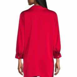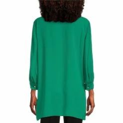 Buy 🔥 Slim Factor By Investments 3/4 Puff Sleeve Button Front Flap Pocket High-Low Top Lush Meadow ✨