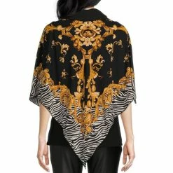 Buy 😍 Slim Factor By Investments Ikat Print Cowl Neck 3/4 Sleeve Layered Poncho Ikat Scarf Print 🤩